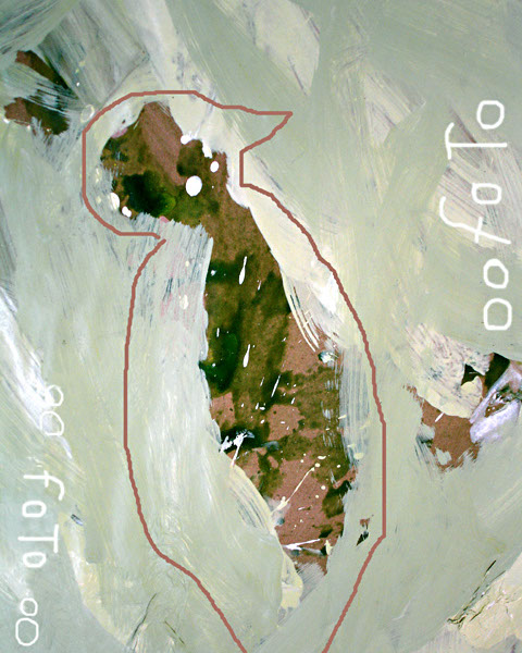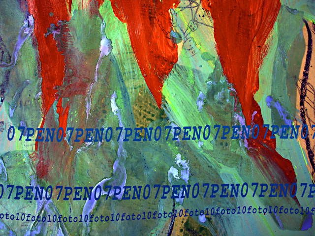 Cette série propose un double regard : chacune des onze peintures-entités de la série est déclinée sous forme de tableaux-photos numériques réalisés à partir de détails de cette peinture. Il est proposé ici une sélection de cinq peintures et leurs tableaux-photos.