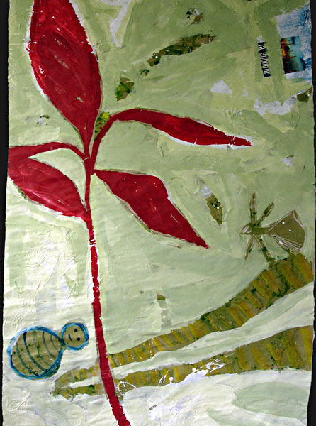 Te souviens-tu de ces matins tendres ? - [Original] acrylique, collage sur papier recyclé épais, 247 x 169 cm
