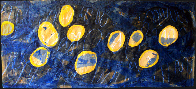 Bulles d'or - [Original] acrylique, sur Kraft épais, 106 x 238 cm