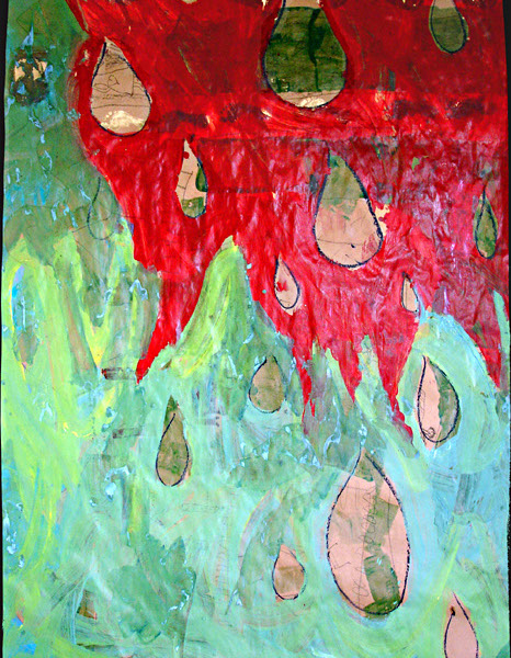 Gouttes de fraîcheur - [Original] acrylique, bâton à l'huile, pastel, sur Kreft épais, 240 x 185 cm