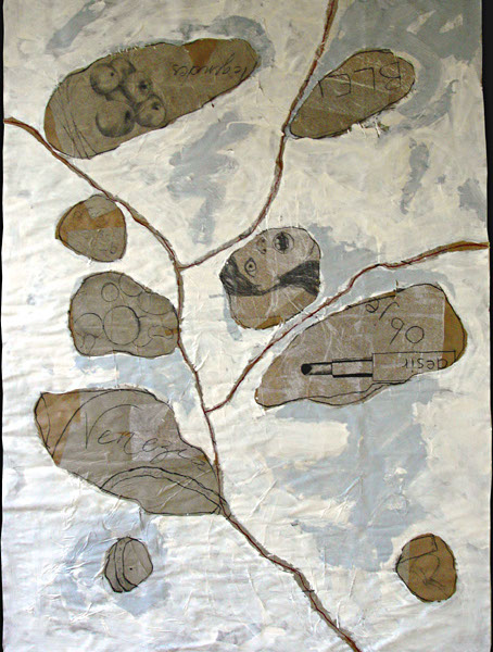 Te souviens-tu de ces matins tendres ? - [Original] acrylique, collage sur papier recyclé épais, 247 x 169 cm