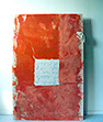 Tableau-sculpture à poser au sol contre un mur, contreplaqué, tissu, pastel, acrylique, objets, pâte à bois, 190 x 80 cm environ
